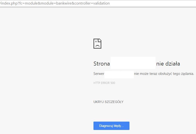 Klikając w (potwierdzam zamówienie) pojawia mi się taki komunikat: