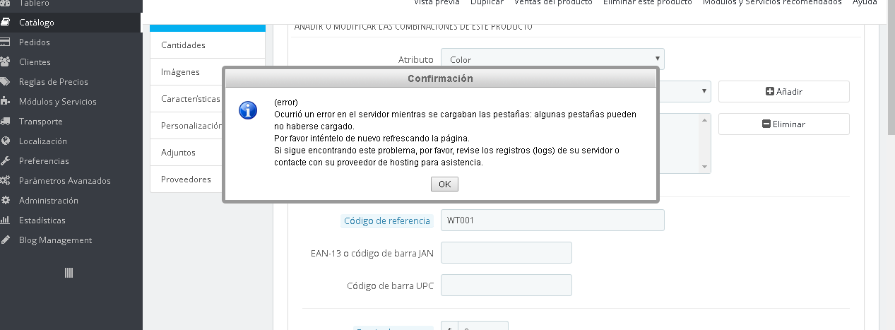 Hola. Me esta apareciendo este error en el administrador de la pagina, cada vez que voy a realizar cualquier acción, he intentado arreglarlo pero no  funciona nada de lo que hago. Agradecería mucho si alguien pudiera ayudarme.