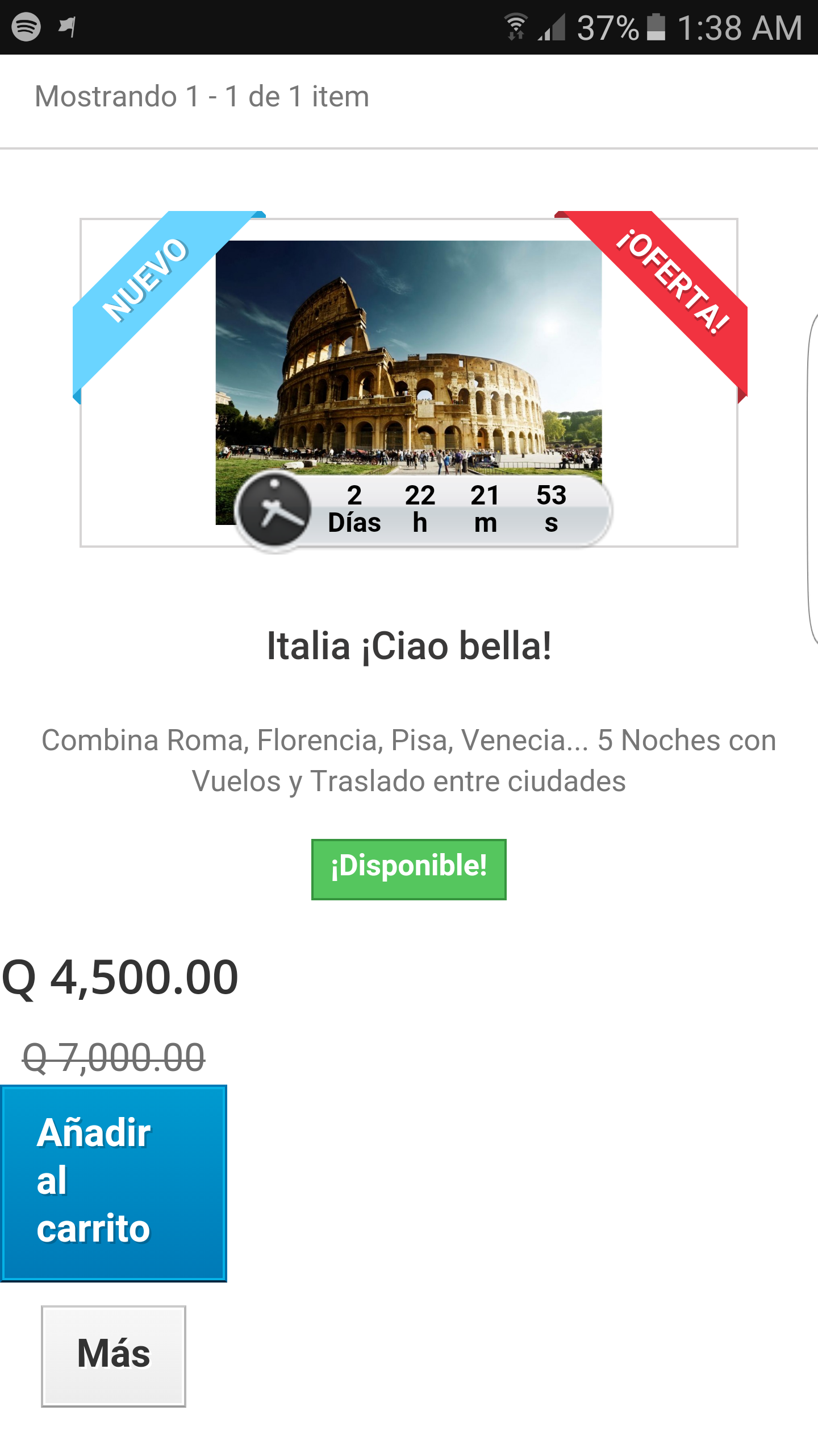 aasantosklee Posted August 19, 2016 Share Posted August 19, 2016 Llevo dos días enteros quebrándome la cabeza con algo que seguramente es sencillo.. pero creo que me he fundido. Version: 1.6.1.6 Tema: default-bootstrap Vista: Desde Móvil url: Guatecupones.com Todas las vistas de los productos se ven muy bien (ordenador y móvil) excepto cuando se selecciona una categoria y ahi salen los productos, el contenedor de los botones sale ¡FATAL! quiero centrarlos y el boton azul ampliarlo para que no se corten las letras, en síntesis hacer que se vea estéticamente bien. Actualmente se ve asi: muchas gracias! Link to comment Share on other sites More sharing options...