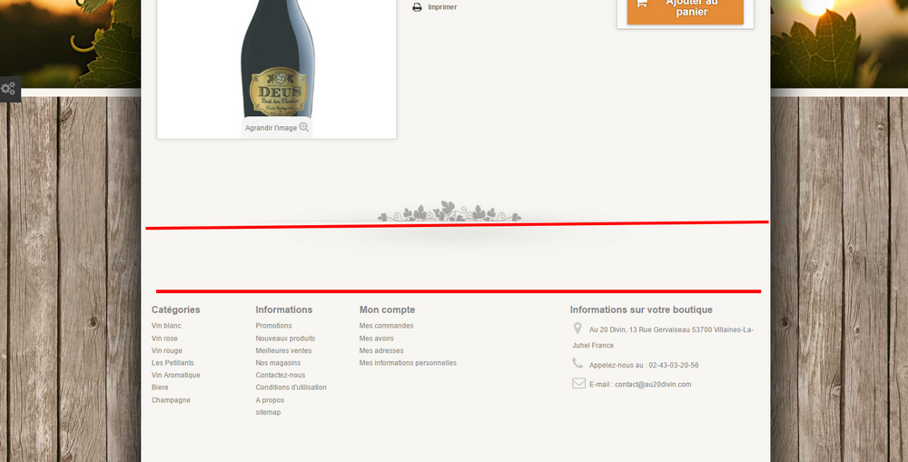 Hugo.b Posted August 21, 2016 Share Posted August 21, 2016 (edited) Bonjour je voulais savoir comment ajouter un petit bout de texte ou une image html à l’endroit ci-dessous (entre les barres rouges). merci pour votre aide Hugo Edited August 21, 2016 by Hugo.b (see edit history) Link to comment Share on other sites More sharing options...