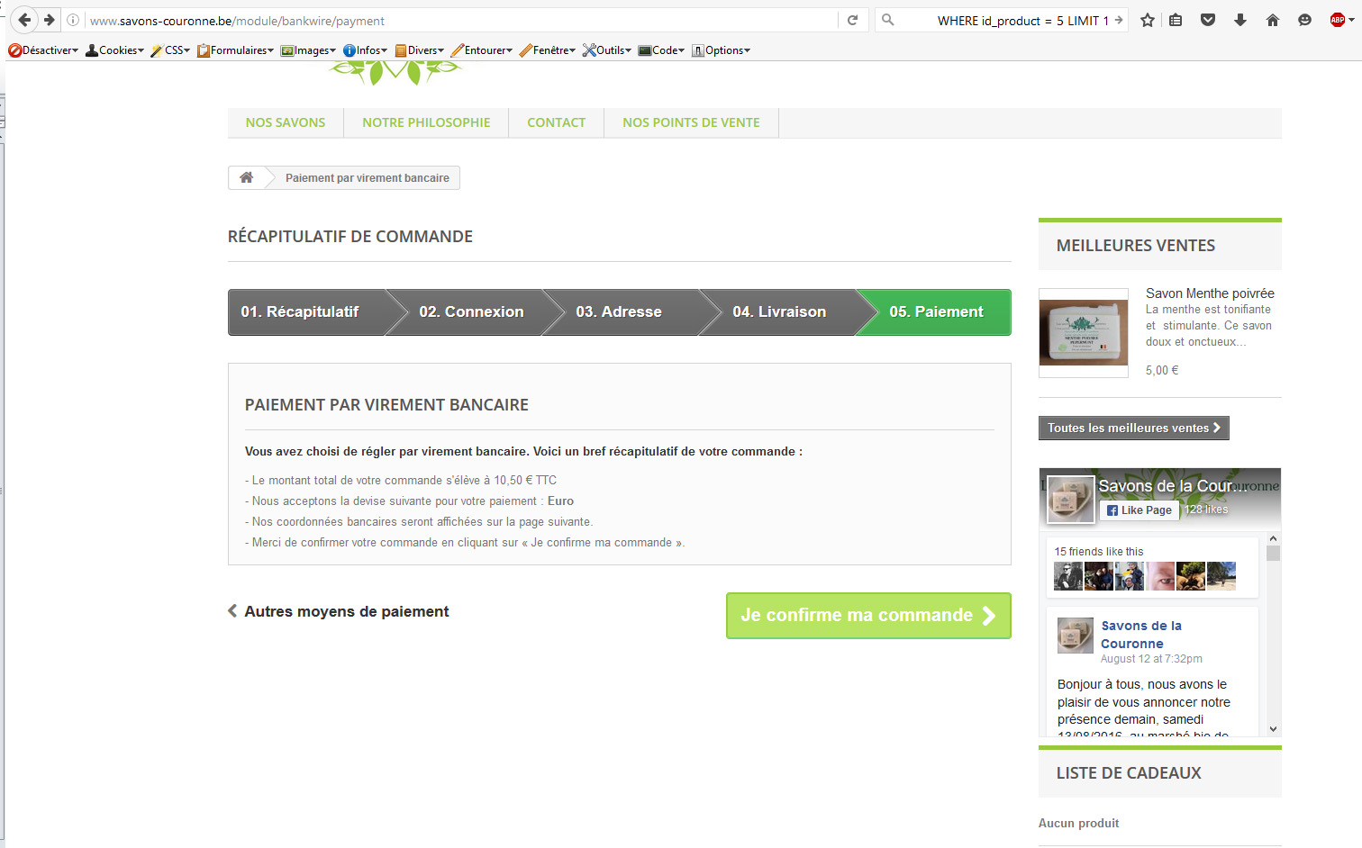 Hello, I have a problem with Prestashop. There is an error when you try to validate an order. After clicking on "je confirme ma commande" (cf screenshot), the following error occurs :