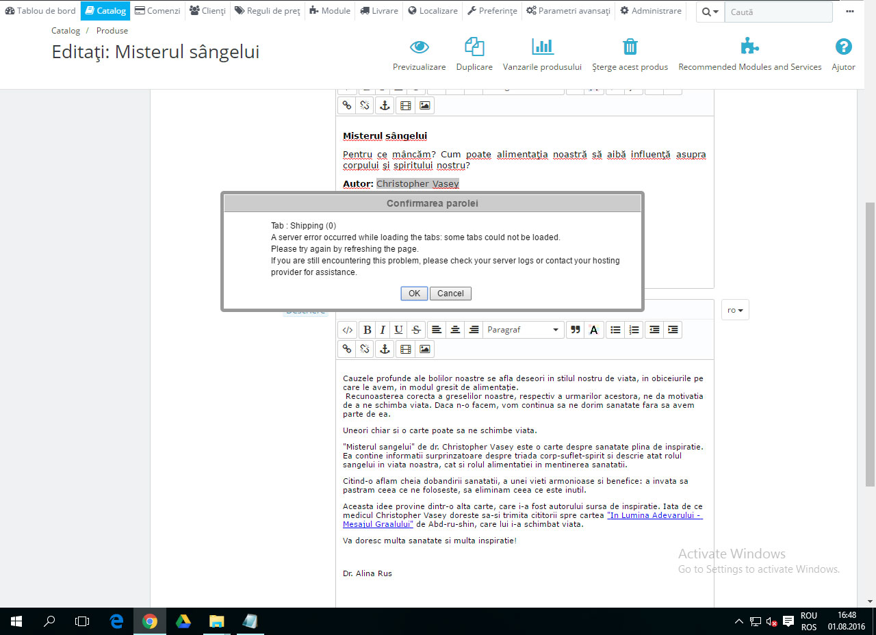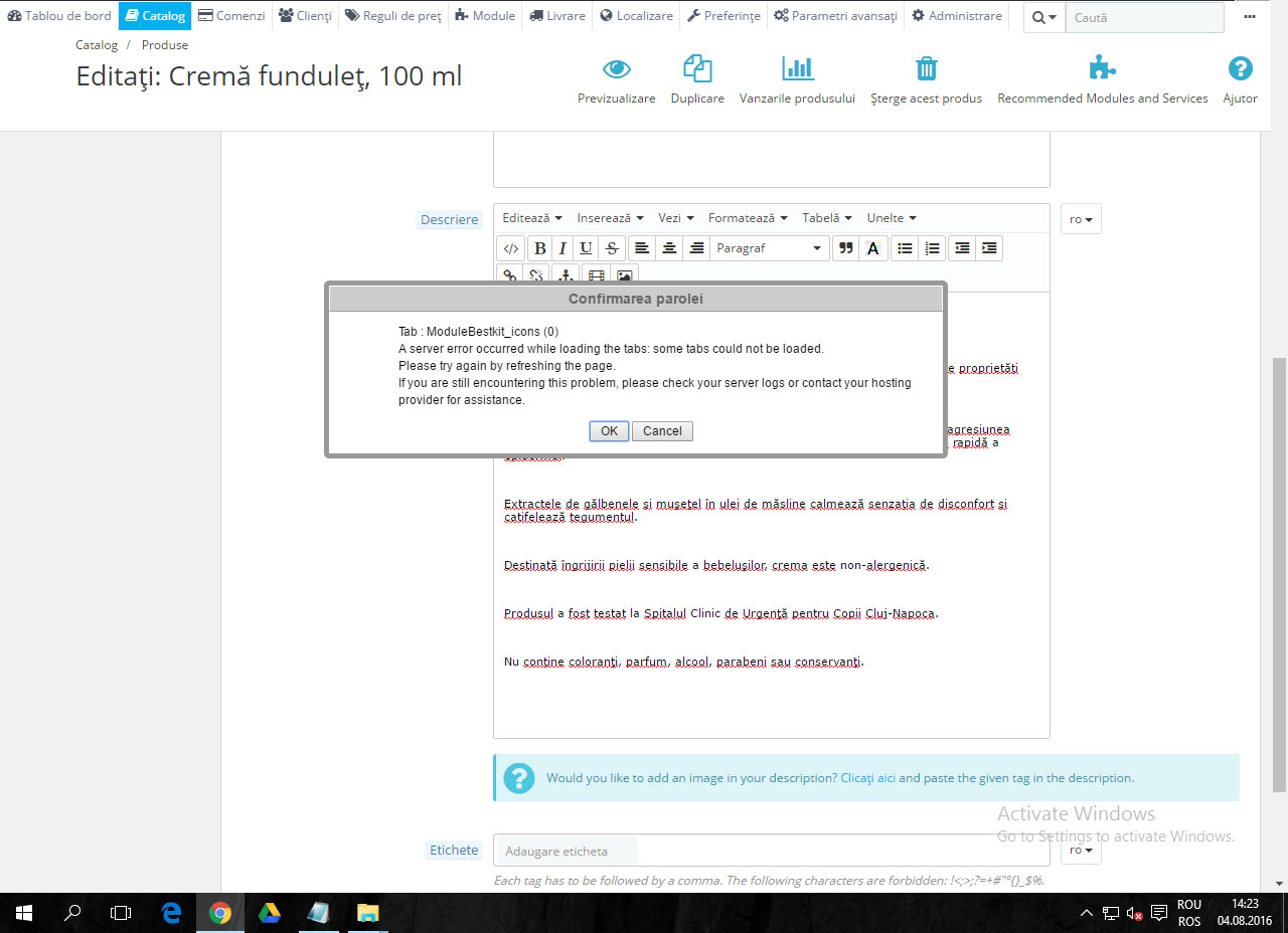 Vali Iacobescu Posted August 22, 2016 Share Posted August 22, 2016 (edited) I have a problem regarding BO. Sometimes, when I'm in a product page edit, a pop-up appears asking me to confirm password. This error appears on every tab of a product, randomly. See the attached screenshot, please. The hosting company says that they don't know what the problem is. Please help! Edited August 22, 2016 by Vali Iacobescu (see edit history) Link to comment Share on other sites More sharing options...