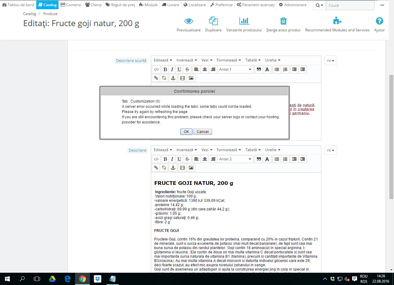 vekia Posted August 22, 2016 Share Posted August 22, 2016 okay i see what is the problem. something goes wrong 'in background'. product page has several sections like informations ,associations, prices, images etc. each of this section is loaded "in background". while browser trying to load one from these sections - it generates an error, so in effect you see this popup. to find what section generates such problems it will be necessary to: go to shop back office to section catalog > products turn on browser console clear it open product edit page watch the console output one of the entry will be red copy it and paste here 1 Link to comment Share on other sites More sharing options...