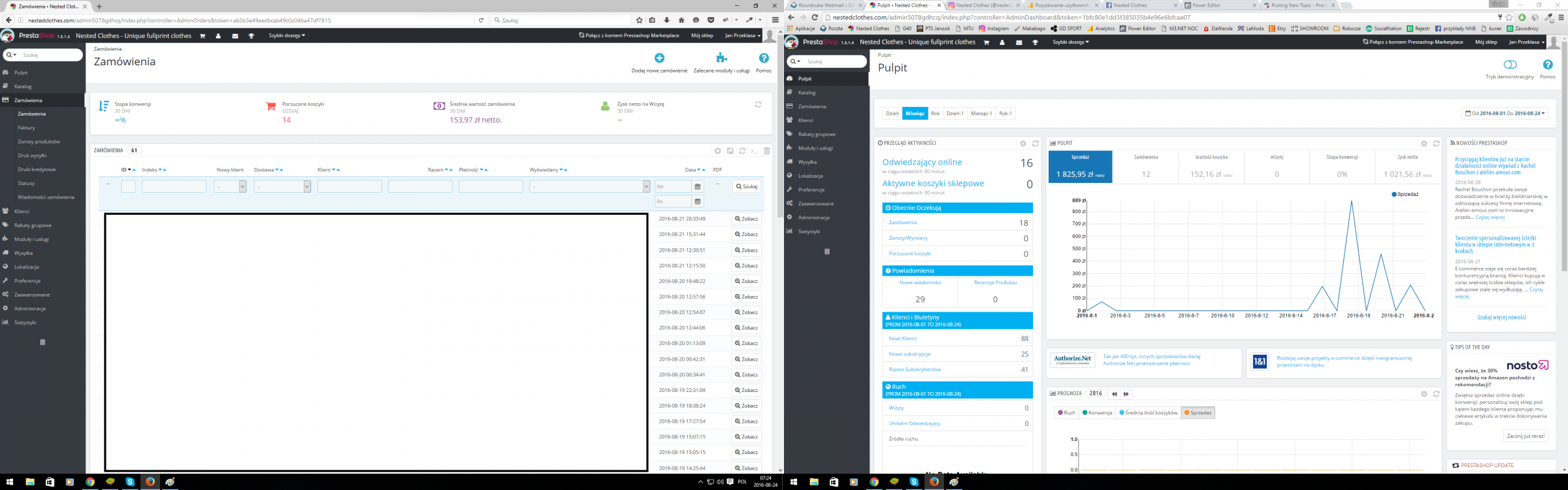 Korzystam z Prestashop 1.6.1.4 i mam problem z zamówieniami. W panelu statystyk wyświetlają się dwa zamówienia, natomiast nie mam tej aktywności w zakładce zamówienia. Faktury mam wyłączone, działam na stockowym stylu, w którym zmienione są kolory.
