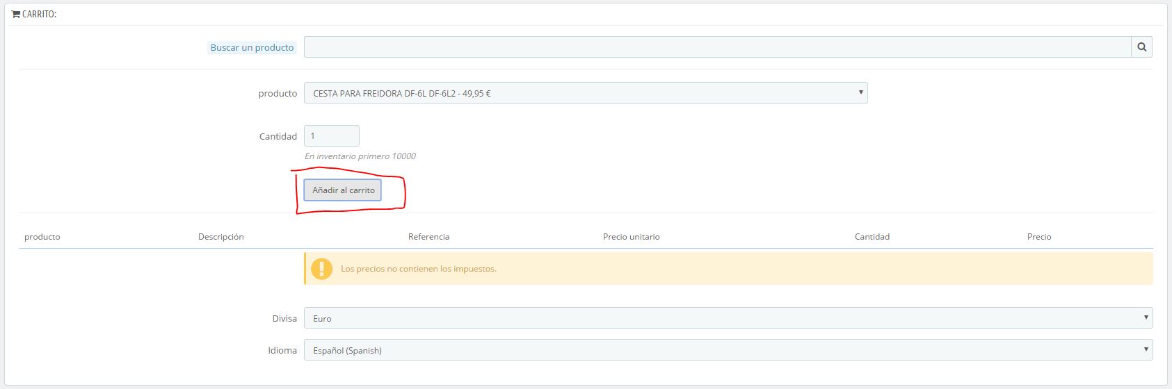 Intento hacer un pedido desde el backoffice y no me deja agregar ningun producto al carrito (no se visualizan cambios) y luego voy a carritos del cliente y se visualiza que ha estado creando un pedido.