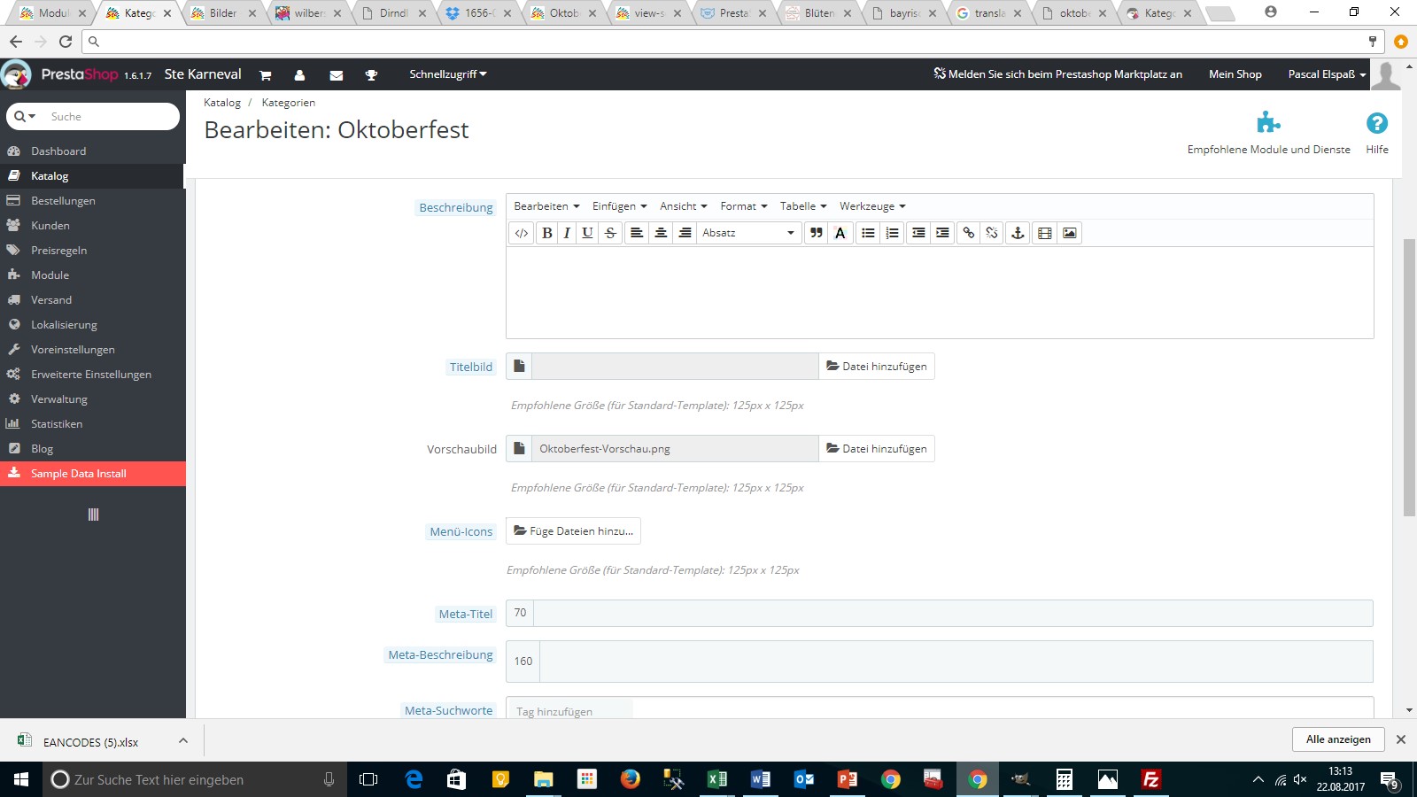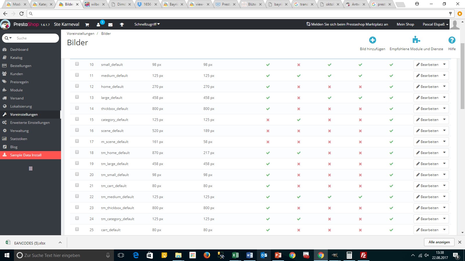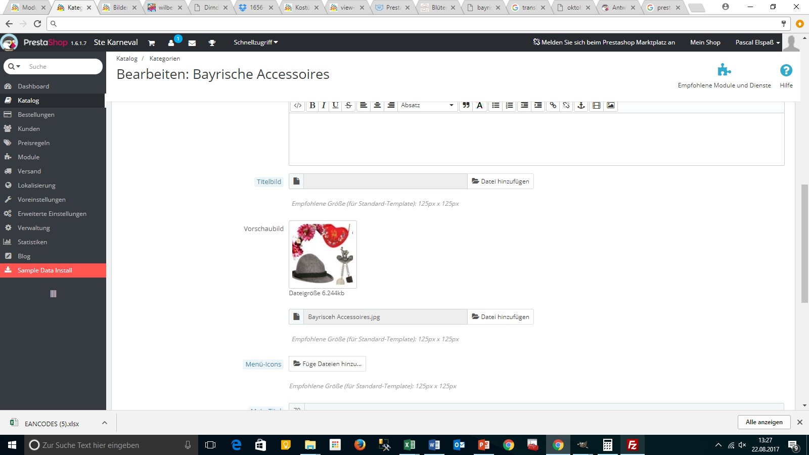 DieserEppi Posted August 23, 2017 Share Posted August 23, 2017 Vielen Dank für die Antwort. Hab alle von rictools angegeben schritte ausgeführt. Dateiname des Bildes ohne Leerzeichen. Cache von Prestashop und meinem Browser gelöscht, Vorschaubilder der Kategorien neu generiert, aber leider hat sich nichts geändert. Hab mir danach den Link des Bildes angesehen (https://www.*******.de/c/123-tm_medium_default/bayrische-accessoires.jpg) Wenn ich mich ja nicht ganz täusche ist "123-tm_medium_default" so wie es im Link steht doch ein Verzeichnis und "bayrische-accessoires.jpg" der Dateiname des Bildes?! Hab einige Bilder in dem Verzeichnis mit den Namen "123-tm_home_default2x.jpg","123-tm_medium_default2x.jpg". Diese Dateien beihalten alle das Bild welche ist vergeblich versuche hochzuladen. Werde aus dem ganzen leider nicht so wirklich schlau. Würde mich nach wie vor über jede Hilfe freuen. Hochachtungsvoll Dieser Eppi Link to comment Share on other sites More sharing options...