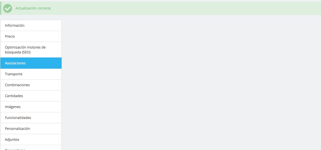 2. Any of the tabs (price, quantity... ) shows nothing but a blank screen // Cualquiera de las otras pestañas que hay para editar o crear un producto, me lleva a un espacio en blanco