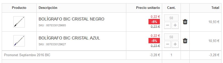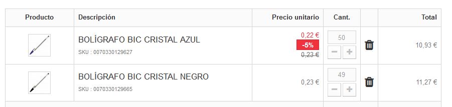 savan Posted September 6, 2016 Author Share Posted September 6, 2016 ¿Alguien puede decirme si lo estoy haciendo bien o mal, o lo que quiero no se puede hacer sin otro modulo? Resumiendo lo de arriba, lo que quiero es generar una regla de descuento para varios artículos (una cantidad minima de cada uno) pero que no tengan que estar todos en el carrito con las cantidades minimas para cumplirse. Es decir, si quiero realizar un descuento para boligrafos azules, negros, rojos y verdes (50 de cada uno) si un cliente compra 50 azules, se le aplique el descuento para los azules, y no que tenga que incluir 50 de cada uno para tener el descuento, o pueda meter otras cantidades inferiores de los otros colores sin que se aplique en ellos (pero si en el azul). Si creo la regla y en la condicion le marco los 4 articulos que quiero y le digo 50 como cantidad, si el cliente mete en el carrito 25 y 25, le aplica el descuento. Si en la condicion añado cuatro reglas de grupo, cada una para un articulo, indicando que debe contener 50 unidades de cada uno, se deben cumplir las 4 reglas o no funciona... solo he encontrado la manera de hacerlo creando un cupon para cada articulo, y asi es independiente de los demas. Pero esto por 100 articulos para cada promocion que haga... No lo puedo hacer por categorias o fabricantes, ya que dentro de cada una unos articulos tienen un descuento y otros otro Un saludo y gracias Link to comment Share on other sites More sharing options...