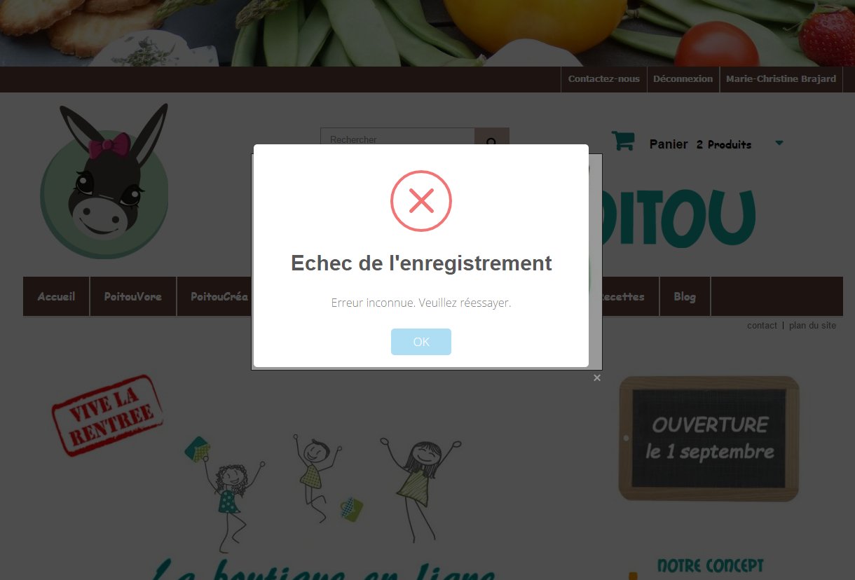 brajard Posted September 6, 2016 Share Posted September 6, 2016 Bonjour, J'ai acheté en juin 70€ le module Popup newsletter. Je l'ai installé,configuré, tout s'est bien déroulé. Il s'affiche bien aux visiteurs. quelques visiteurs se sont inscrits. J'étais étonnée de ne plus avoir d'inscription, j'ai donc fait un essai et quand on valide après avoir inscrit son nom, adresse mail etc... s'affiche un message d'erreur : Echec de l'enregistrement, Erreur inconnue veuillez rééssayer. J'ai envoyé plusieurs mails à Prestashop et pas de réponse. Je suis assez furieuse car ce n'est pas un module gratuit, 70€ c'est une somme ! est ce quelqu'un d'autre a rencontré ce problème ? Marie-Christine Link to comment Share on other sites More sharing options...