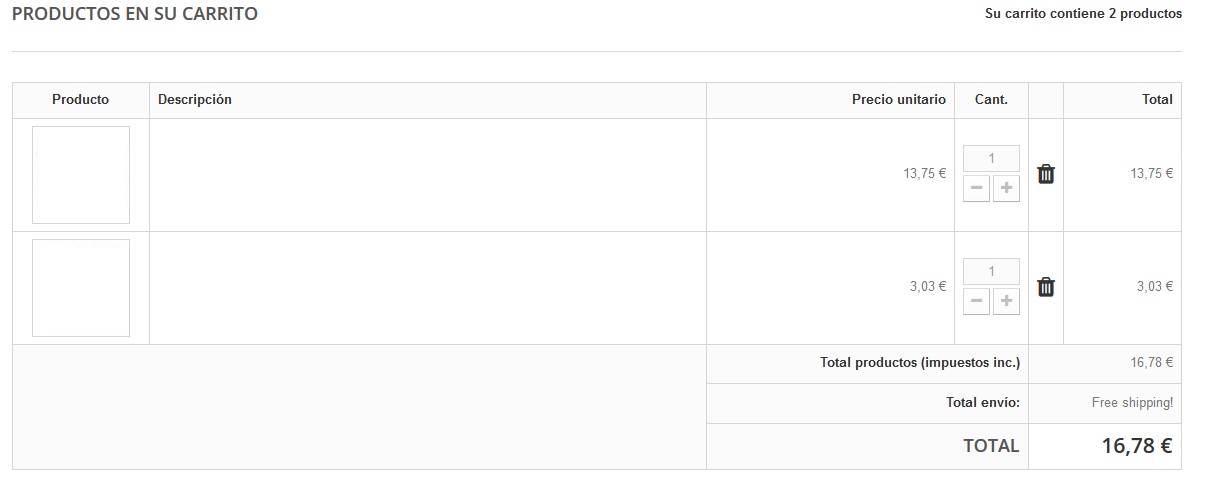 Sergio_arditec Posted September 7, 2016 Share Posted September 7, 2016 Buenas, Estaríamos interesados en modificar el estilo con el que aparecen los artículos en la web. En concreto necesitaríamos que se mostraran como se visualizan en la página del carrito de compra, adjunto una captura con el estilo de presentación que no interesaría. ¿Hay alguna forma de mostrar los productos de esta forma? Gracias por la ayuda. Saludos. Link to comment Share on other sites More sharing options...