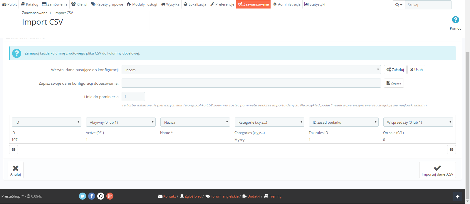 pikselkomp Posted September 11, 2016 Share Posted September 11, 2016 Mam problem z importem CSV. Ustawiłem sobie kolumny, które chcę zaimportować, również w pliku CSV usunąłem zbędne kolumny. Kolumny ustawione w sklepie przy imporcie zgadzają się z tymi w pliku CSV. Mimo wszystko przy imporcie nie wyświetla się np. nazwa produktu, zupełnie nie wiem czemu skoro jest w pliku. (załącznik) Może usunąłem jakieś znaczące kolumny? Link to comment Share on other sites More sharing options...