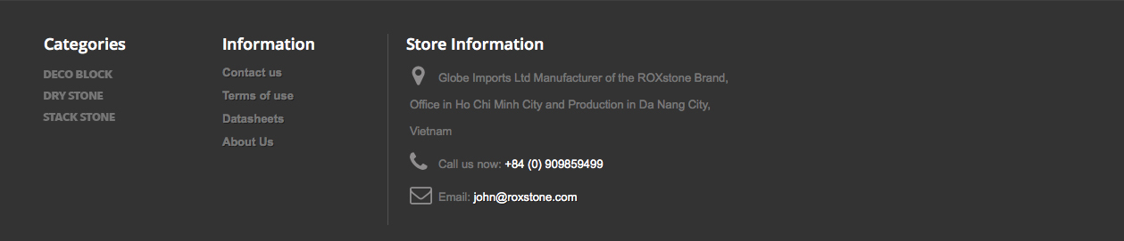 JohnROX Posted September 13, 2016 Share Posted September 13, 2016 (edited) PRESTASHOP 1.6.0.14 - theme default bootstrap V1.0 I want to put the Sub Categories in the footer. Standard Presta shop has the main categories only in the footer. My main category is PRODUCTS, then sub categories under the PRODUCTS. How can I show the subcategory list in the footer with the default bootstrap V1.0 http://roxstone.com First image shows how it is now Second image shows what I want Edited September 13, 2016 by JohnROX (see edit history) Link to comment Share on other sites More sharing options...
