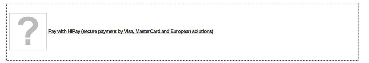 jeromebis Posted September 27, 2016 Share Posted September 27, 2016 (edited) Bonjour à tous, Je viens d'installer le module Hipay (sur Prestashop 1.6.1.6) et sur la page Order au moment de choisir la méthode de paiement, l'image qui devrait apparaître à côté de hipay est remplacée par un point d'interrogration. Avez-vous déjà rencontré ce problème et trouvé une solution ? NB : Il y a déjà eu une discussion sur le forum mais hélas aucune solution trouvée... Voici le shop : https://shop.vescape.com Edited September 27, 2016 by jeromebis (see edit history) Link to comment Share on other sites More sharing options...