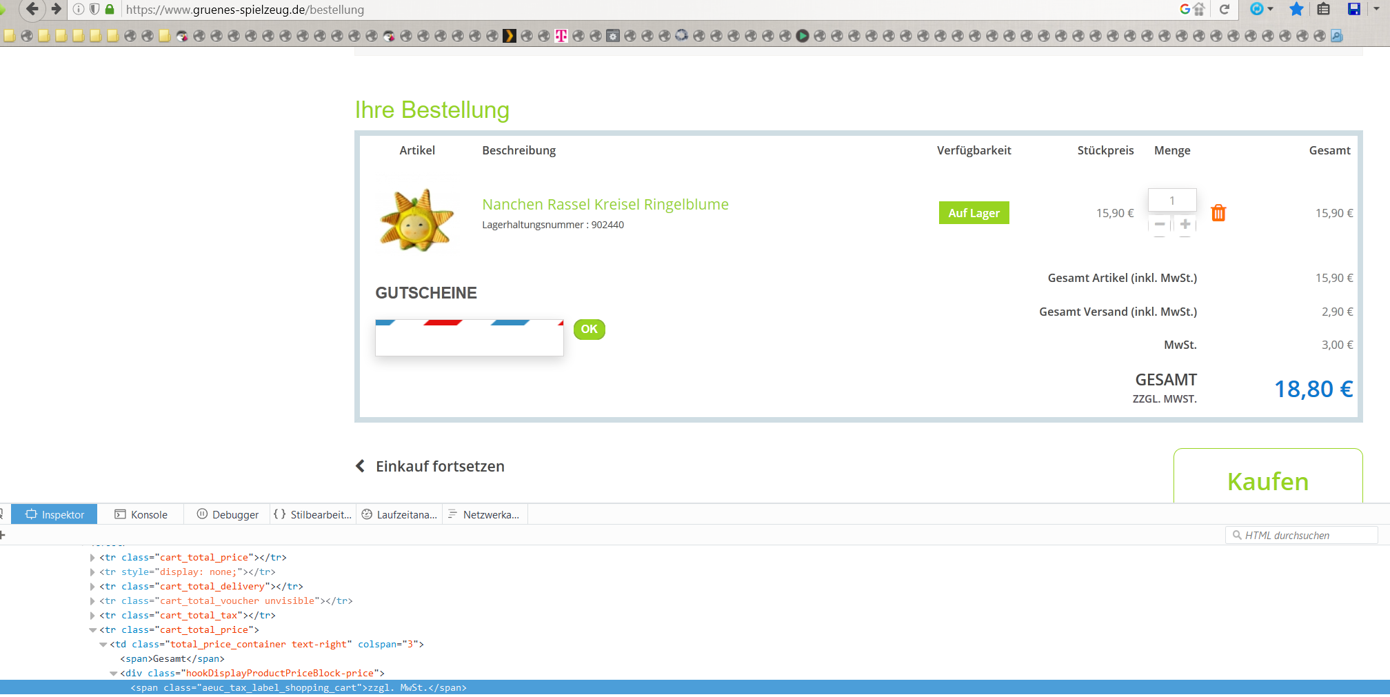 [gelöst] EU Rechtssicherheit: Anzeige Gesamtpreis o. Mwst/inkl.MwSt. stimmt nicht