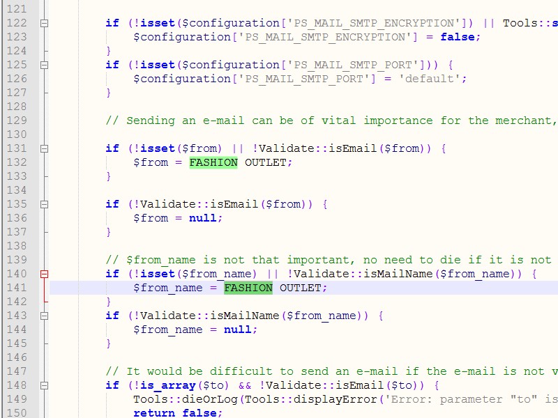 grz3chu Posted October 5, 2016 Author Share Posted October 5, 2016 tak jak pisalem wyzej. musisz w kontrolerze zmienic nazwe ze standardowo dopieranej PS_SHOP_NAME na swoja. tutaj szukaj miejca gdzie jest ta nazwa uzywana dla 'From:' - czyli nadawcy maila. Zmieniłem w/w nazwę w classes/mail.php ale podczas testowego zamówienia gdy wciska się przycisk "potwierdzam zamówienie" wyskakuje błąd: Parse error: syntax error, unexpected 'OUTLET' (T_STRING) in /home/virtualki/129932/classes/Mail.php on line 132 Wgrałem już kopię zapasową mail.php ale bład pozostał :/ Link to comment Share on other sites More sharing options...