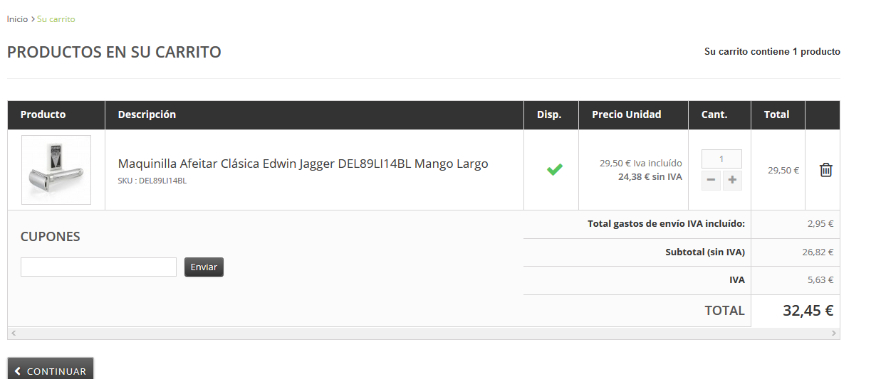 Jose Manuel M. Posted October 1, 2016 Share Posted October 1, 2016 Muy buenas al poner un producto en el carro no me muestra los gastos de envío (adjunto imagen) y me gustaria que saliese. En la configuración de transportista lo tengo bien, ya que lo pueden ver visitante, invitado y cliente pero no lo muestra como véis en la imagen. esto me ha pasado desde que actualice a 1.6.1.7 antes lo mostraba bien. Os dejo otra imagen de como me gustaria como se tiene que mostrar eso sí una vez que estas logueado si los muestra Link to comment Share on other sites More sharing options...