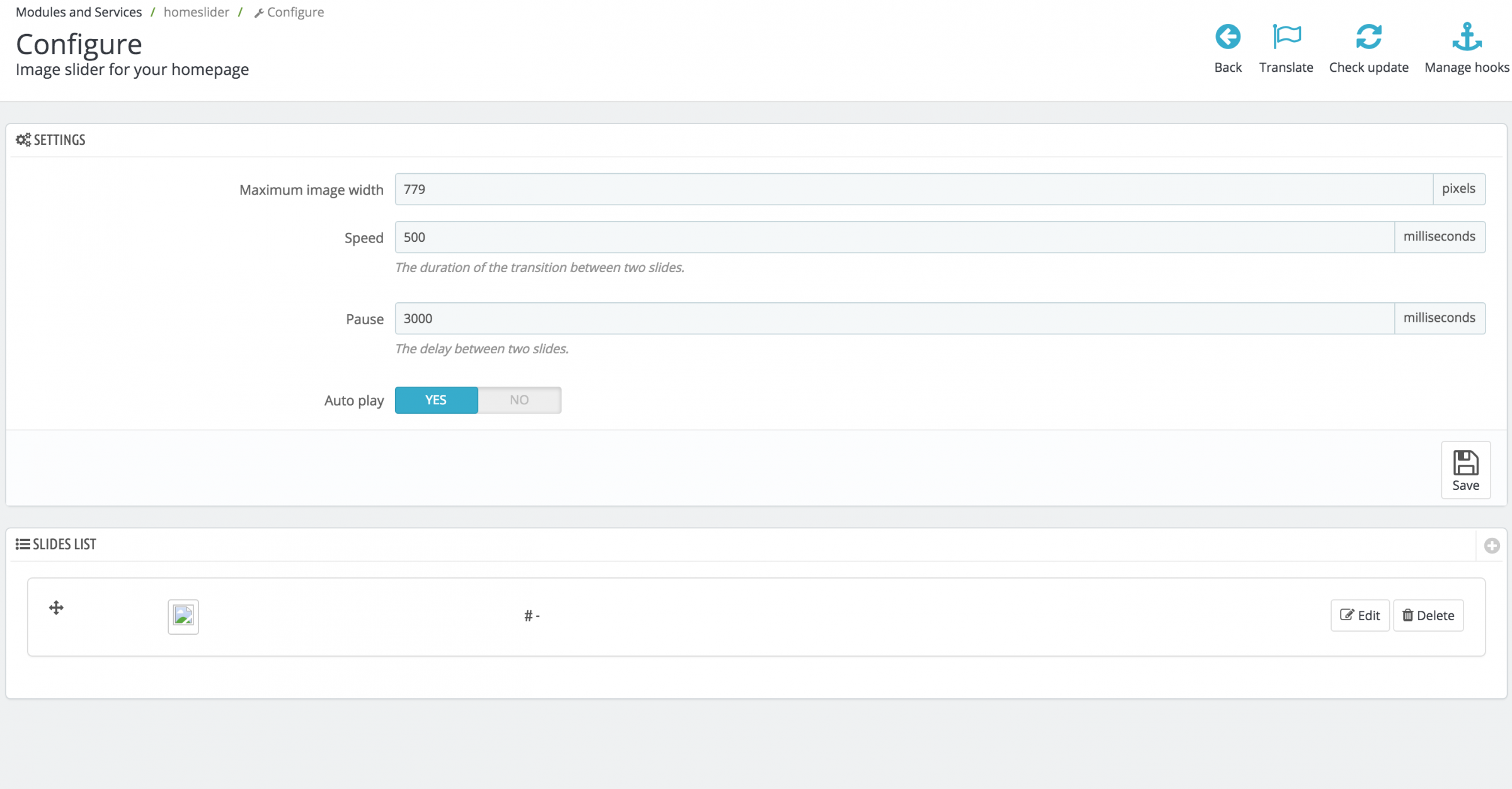 ustepper Posted October 4, 2016 Author Share Posted October 4, 2016 Yep. I know that it's the Home featured products. All my products are listed in the Home category. This was also the case before this fault appeared. The module is set to category 2, which should be Home. The slider is set to top column (which it also was prior to the fault) I have attached a screenshot of the image slider configuration. As you see, there is some weird thing in the slides list. I have tried to delete it and to add new slides. But it doesn't work... Link to comment Share on other sites More sharing options...