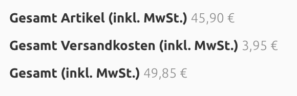 retcarpet12 Posted October 6, 2016 Share Posted October 6, 2016 Hey ihr Lieben, kann mir jemand helfen? Wenn man bei uns im Shop etwas in den Warenkorb hinzufügt, wird es in der Schnellansicht des Warenkorbs "inkl. MwSt" angezeigt. Das soll so aber nicht sein. "MwSt im Warenkorb anzeigen" habe ich aber bereits auf "Nein" geschalten. Oder gibt es ein Modul, dass den ganzen Shop automatisch an den Kleinunternehmerstatus anpasst? Habe bis jetzt nichts gefunden. Viele Dank für eure Hilfe, AS Link to comment Share on other sites More sharing options...