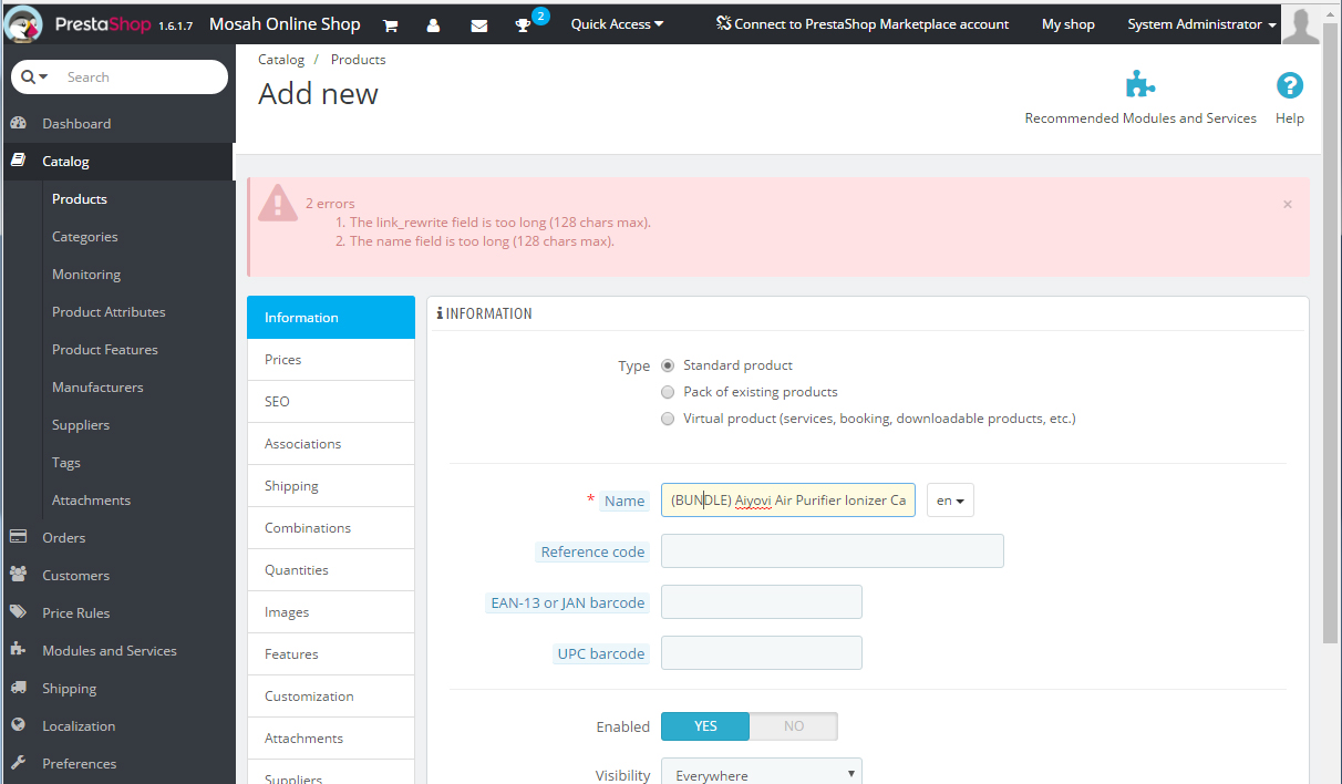 ShukrieySaid Posted October 6, 2016 Share Posted October 6, 2016 (edited) Hello Guy, I need help for solve my problem..I want to add lenght of my product name in bo..Because my Product Name is too long...i dont know how to find the thing. Please Help.. Im Using Prestashop 1 . 6 .1 .7 i attached here Edited October 6, 2016 by ShukrieySaid (see edit history) Link to comment Share on other sites More sharing options...