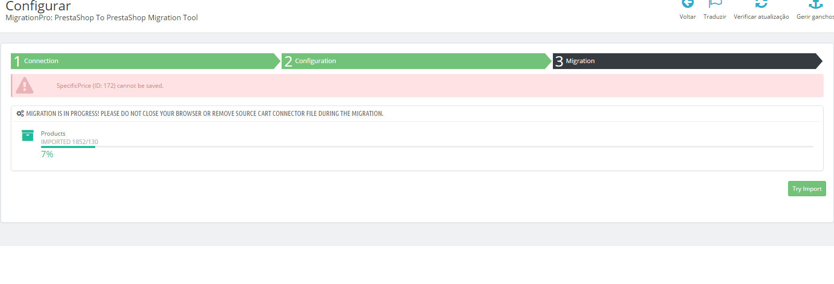 lagoacity Posted October 7, 2016 Share Posted October 7, 2016 Hi guys, I have a problem when i want to import my products to my new prestashop BO, i have a "MigrationPro: Prestashop to Prestashop Migration Tool", and when i try to migrate we send me a menssage with this error "SpecificPrice (ID: 172) cannot be saved." How can i sole this problem? Link to comment Share on other sites More sharing options...