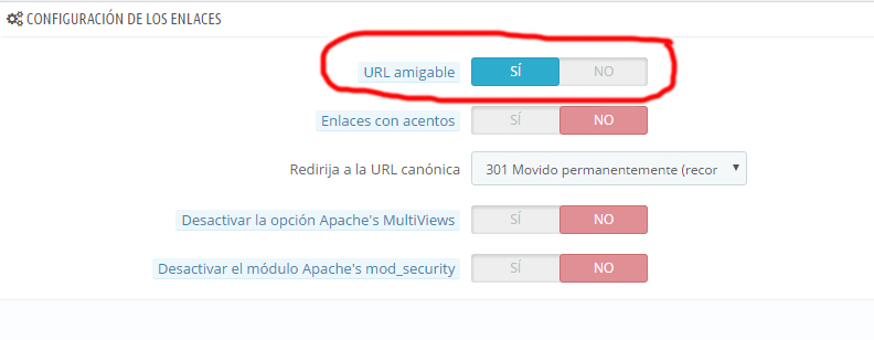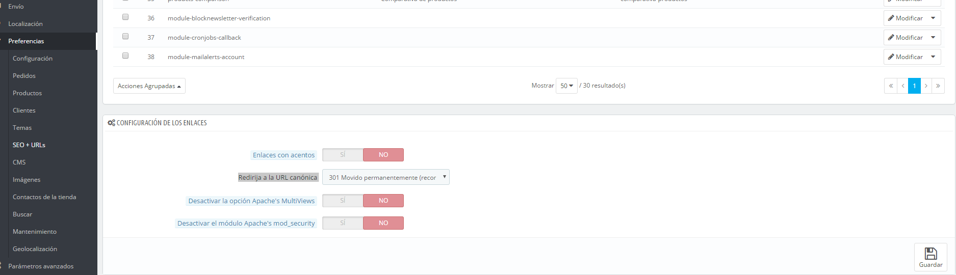 El Patron Posted October 9, 2016 Share Posted October 9, 2016 in AdminMetaController, and I had forgot about this, there is call to Tools.php/modRewriteActive() This check is failing on your server, i.e. existence of mod_rewrite enabled, so the option to display Friendly URL is not presented. Here the check obviously returns false and you do not see Friendly URL. However when I visit your shop I do see Friendly URL's. Other observations: back office-->advanced-->performance These should be enabled CCC (COMBINACIÓN, COMPRESIÓN Y CACHE) You have on performance page also set 'disable 3rd party modules'. Link to comment Share on other sites More sharing options...