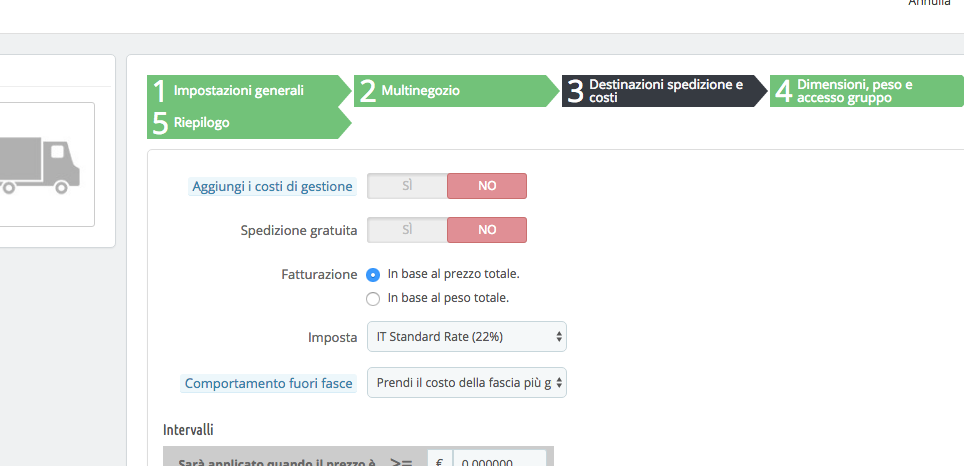BulbaSour Posted October 11, 2016 Share Posted October 11, 2016 (edited) Ciao a tutti... come da titolo ho un problema con il calcolo delle spese di spedizione nell'anteprima del carrello. In pratica, anche se ho impostato un corriere di base con lo stesso prezzo per tutte le spedizioni, con l'inserimento del primo articolo nel carrello, l'anteprima nel riepilogo mi da spedizione gratuita, se inserisco un secondo articolo il prezzo si aggiorna con il corretto importo per le spese di spedizione. La stessa cosa succede se imposto una successiva fascia. Mettiamo che a 50€ inserisco una nuova fascia di spedizione, dopo l'inserimento del primo articolo che mi fa superare il totale indicato il valore delle spese di spedizione nell'anteprima non varia, una volta inserito un secondo articolo il prezzo si aggiorna. Questi errori si verificano solo nell'anteprima del carrello, mentre se entro nella pagina nel dettaglio carrello tutto è corretto e se effettuo un refresh della pagina anche nelle anteprime i valori sono corretti. Chi mi può aiutare? P.S. allego foto di esempio. Edited October 11, 2016 by BulbaSour (see edit history) Link to comment Share on other sites More sharing options...