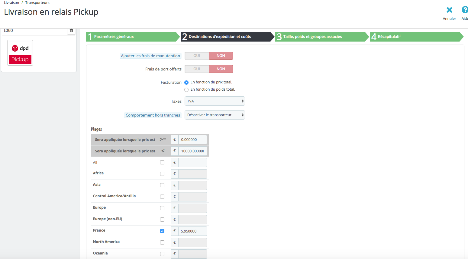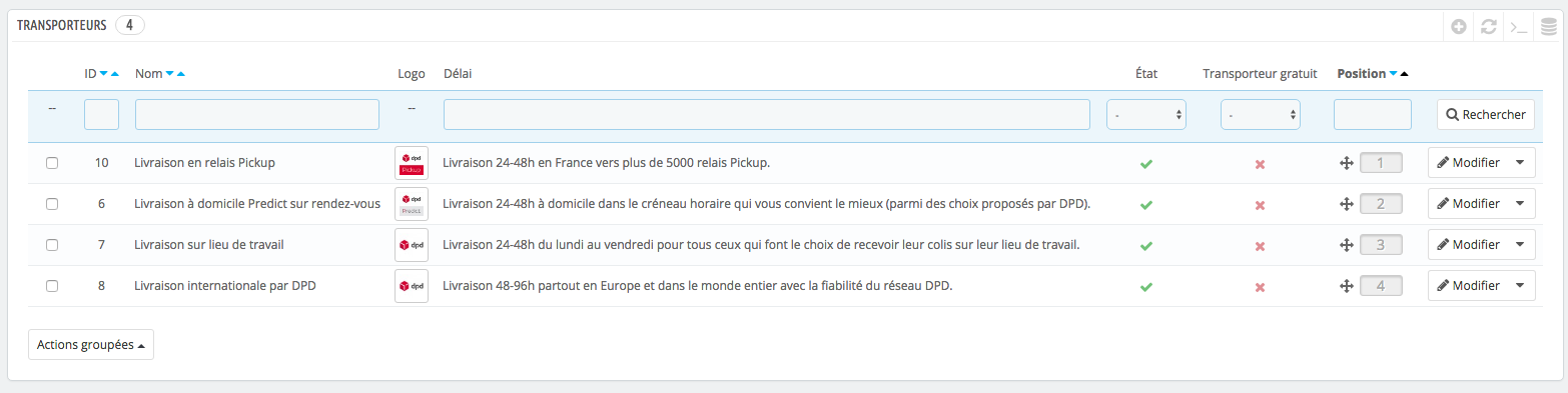 ateliermedia Posted November 21, 2016 Author Share Posted November 21, 2016 Merci pour la réponse doekia, je suis désolé, j’ai oublié de cocher la case pour suivre le sujet. Alors, ça ne se passe de manière automatique - installation module dpd et fournir les paramètres ? Voici à quoi resemble la partie Transporteurs (captures ci-jointes) - onglet transporteurs + details pour Livraison en relais Pickup.Merci beaucoup, Leo Link to comment Share on other sites More sharing options...