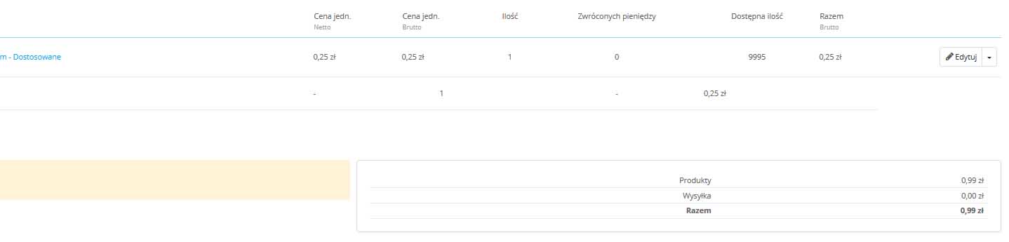 ale w danych zamówienia pojawia się cena 0,25zł cena jednostkowa i to samo jest na fakturze.