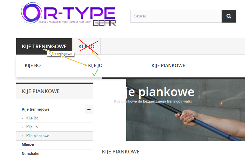 Najeżdzajac kursorem na 'kije treningowe' miedzy innymi 'kije jo' wyswietlaja sie prawidlowo lecz nie rozumiem dlaczego kije jo rowniez wyswietlają sie w menu nawigacji.