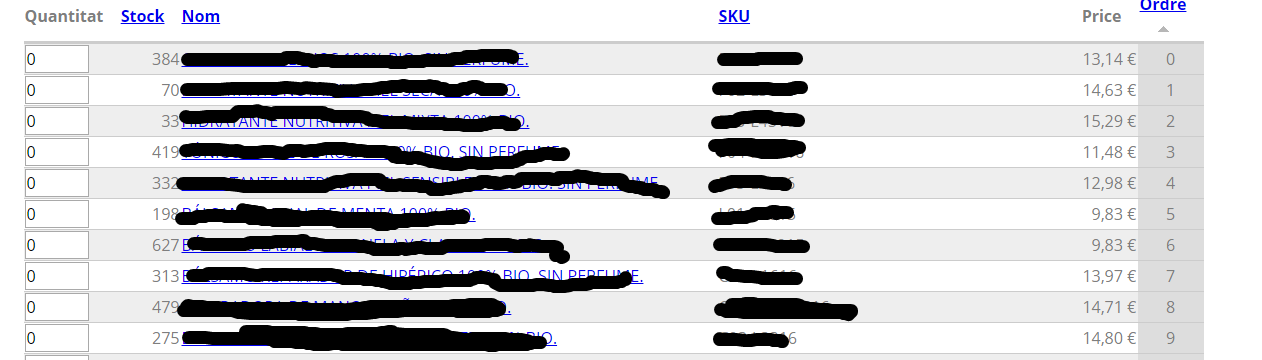Hola me gustaría saber si hay alguna forma de modificar la forma en la que se hacen los pedidos y que en ve de tener que buscar los productos me salga una lista y pueda poner las cantidades y realizar el pedido. Me seria de gran ayuda para realizar mi proyecto.Gracias de antemano. Adjunto imagen la primera es la que tiene prestashop y la segunda es de una web montada con drupal me gustaría saber si podría crear una pagina para realizar pedidos o algo parecido como la de drupal.