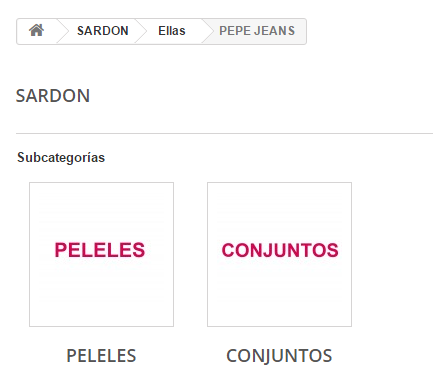 Isabella7 Posted October 20, 2016 Share Posted October 20, 2016 Buenos días, llevo peleándome un par de días con las categorías de mi tienda online, y he estado buscando alguna solución antes de enviar este mensaje, pero no la he encontrado.La cuestión es, que las categorías de mi tienda online se han vuelto locas, salen subcategorías que no tienen que salir y que no existen en esa ruta.El enlace de mi tienda es este Si se pincha en la categoría Sardon, salen las subcategorías Ellas > Pepe Jeans y eso no tendría que salir Tengo 500 productos puestos, como tenga eliminar todo y volver a subirlo, me da algo...Hay alguna solución?Muchas gracias, un saludo. Link to comment Share on other sites More sharing options...