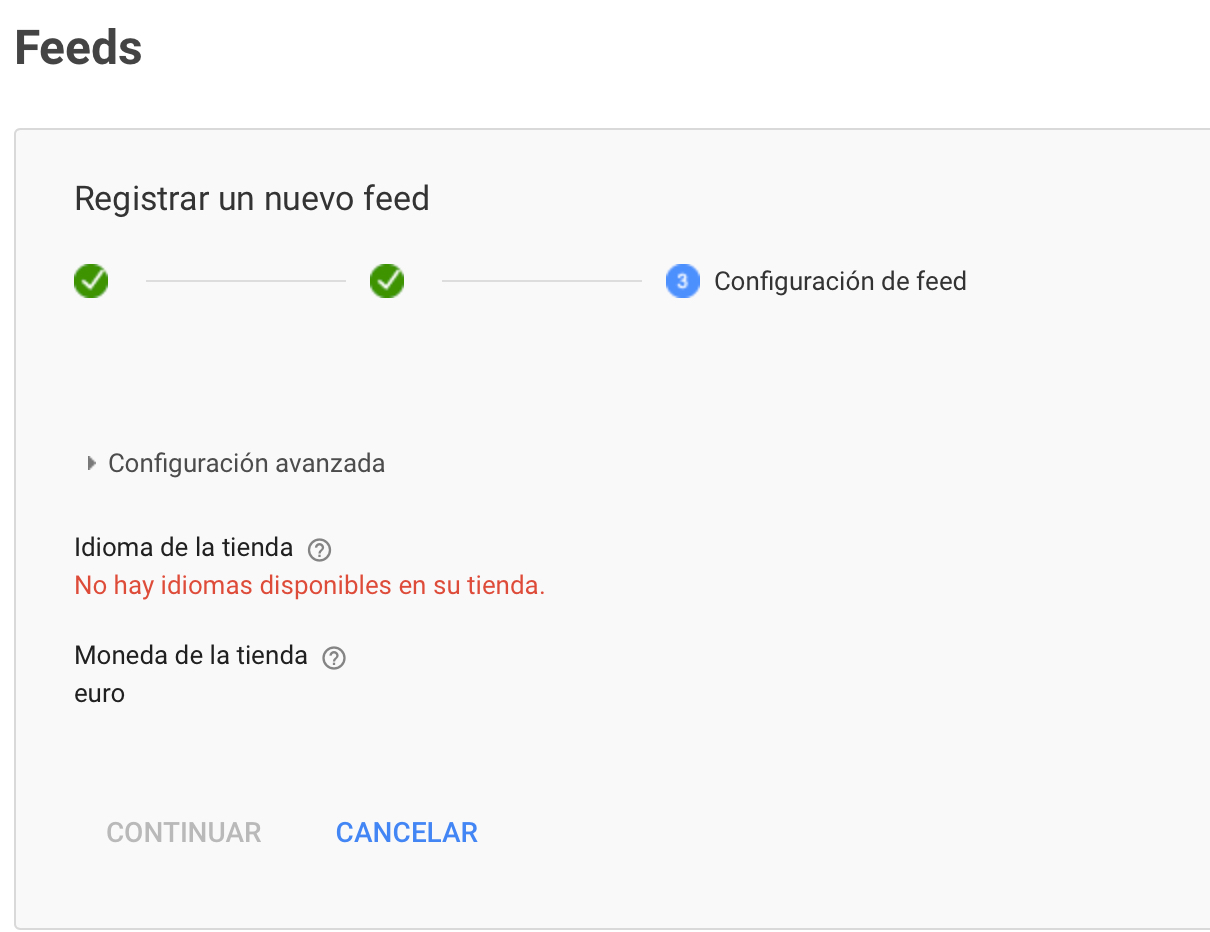 Estoy intentando crear un Feed para Google Merchant Center para exportar mis productos.... pero me da este error de las imagenes.
