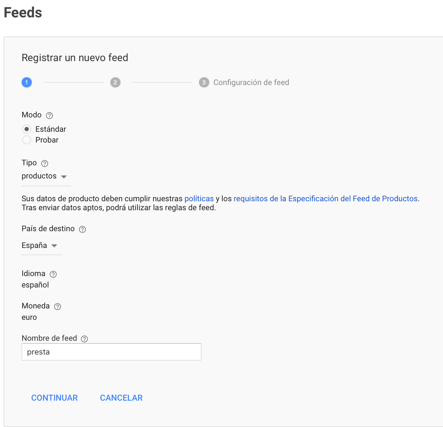 Crear Feeds para Google Merchant Center