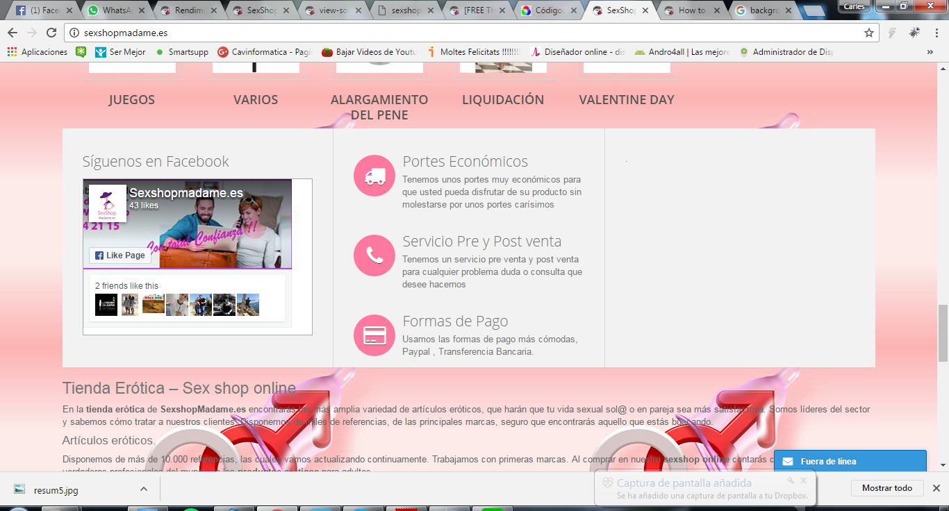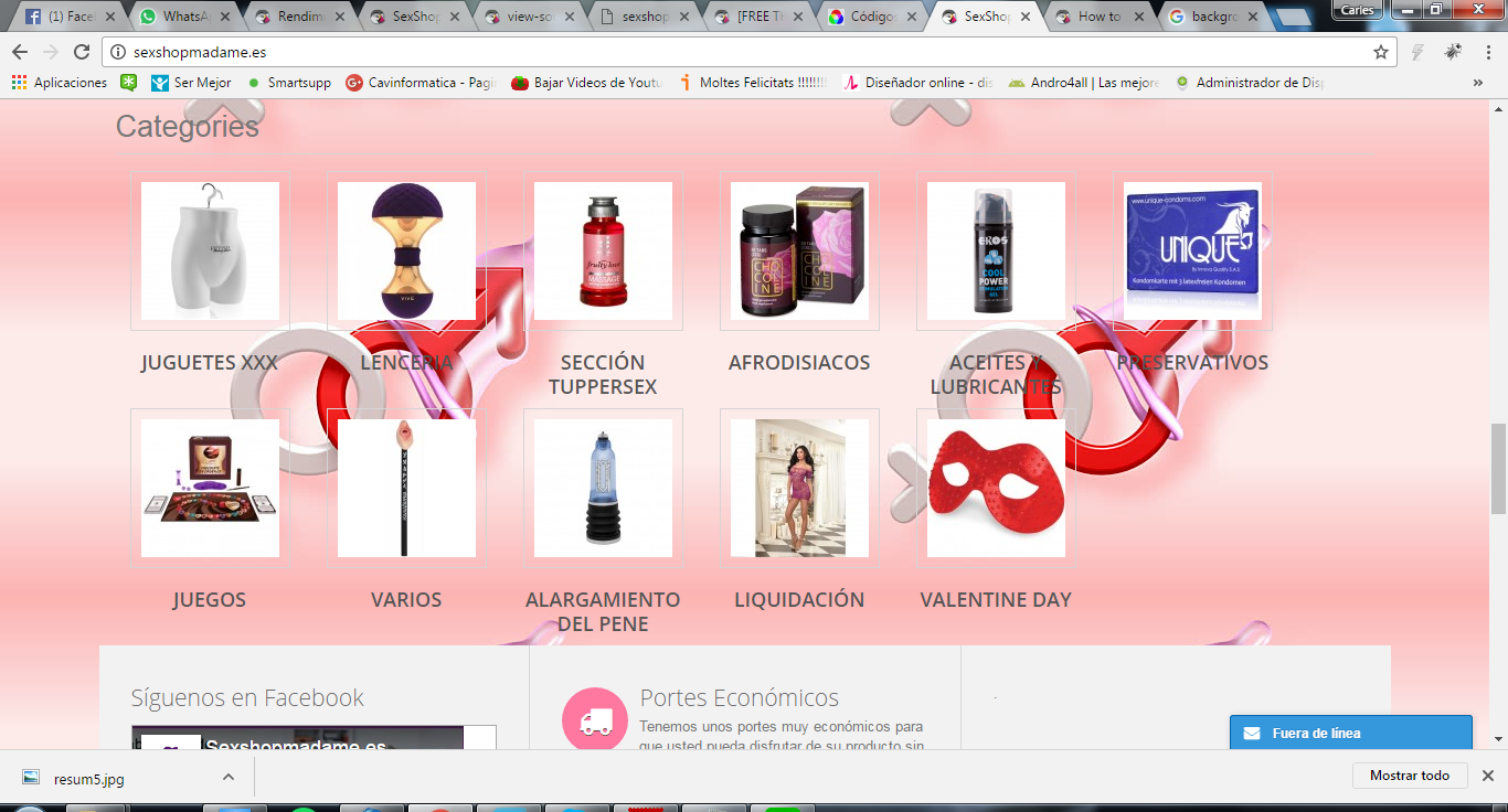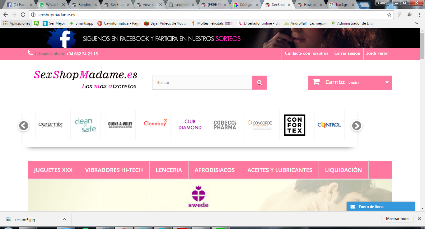 cavinformaticaonline Posted October 20, 2016 Share Posted October 20, 2016 Buenas noches amigos, hace ya unas horitas que estamos mirando por los foros y no conseguimos cambiar un pequeño detalle, poner el fondo de imagen blanco de los productos con el mismo fondo de la base o sea lo interesante seria poner transparente los productos, y la parte superior del prestashop, pero la parte superior no nos molesta mucho, y tambien seria inteesante la parte del CMS del footer que quedar en gris tambien poder ponerlo transparente, os estariamos muy agradecidos si nos podeis ayudar. La web esta ta en produccion, gracias dejamos enlace a web y capturas por si os ayuda http://sexshopmadame.es Saludos amigos, esperamos vuestra ayuda Link to comment Share on other sites More sharing options...