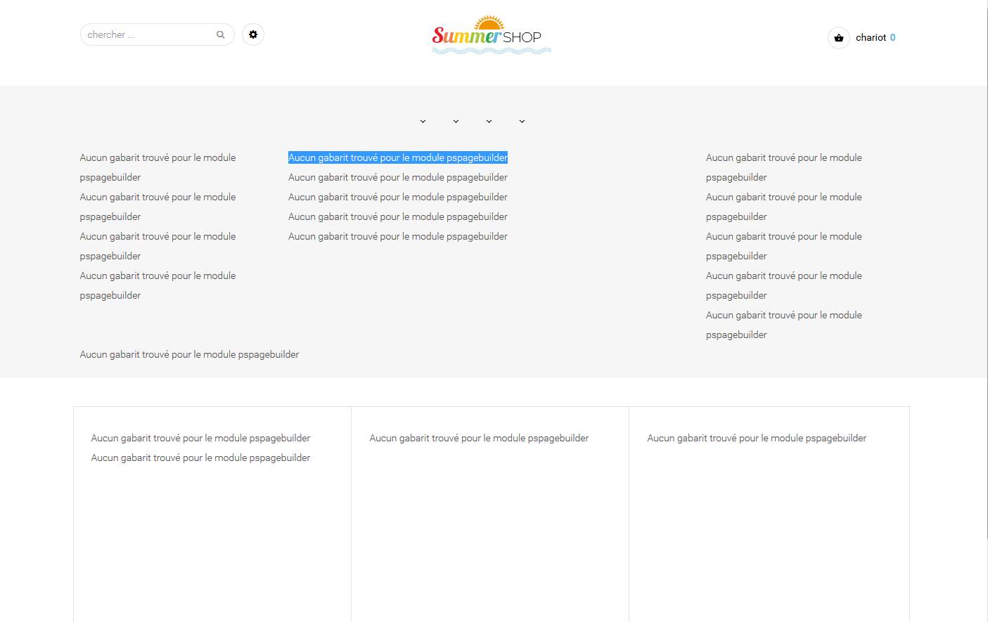 Bonjour, après une mise à jour de prestashop 1.6.0.1 to 1.6.1.7 j'ai installé mon nouveau thème pts summershop et celui ci m'affiche sur la page d’accueil "Aucun gabarit trouvé pour le module pspagebuilder" cf piece jointe.