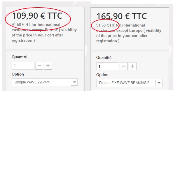 Jokeriders Posted October 24, 2016 Share Posted October 24, 2016 Bonjour, j'ai ajouter le montant HT sur mes fiches produits. seulement sur les fiches produits avec des déclinaisons à prix variable , le HT ne change pas . ex : produit A / déclinaison 1 = 100€ TTC ( affichage du HT à 83.33€ ) produit A / déclinaison 2 = 120€ TTC ( l'affichage du HT reste à 83.33€ ) voir image pour encore mieux comprendre . comment je pourrais faire en sorte que le HT soit recalculer en fonction du TTC reel ? merci . Link to comment Share on other sites More sharing options...