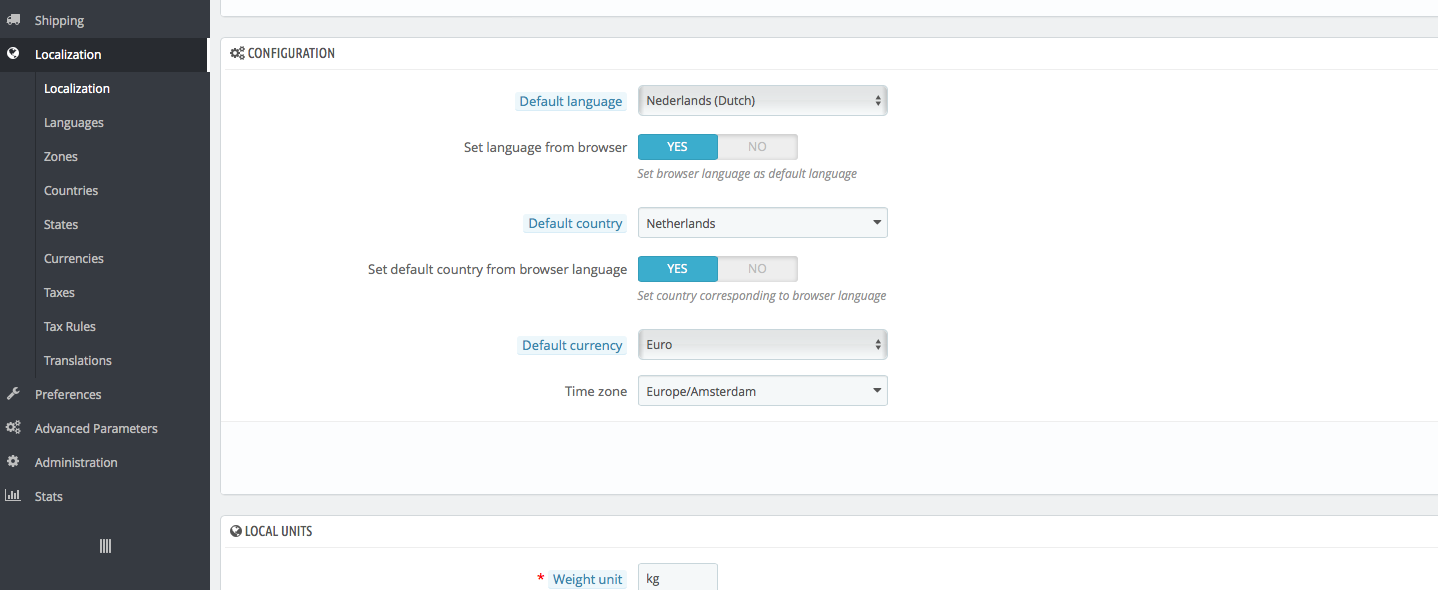 pdaalmeer Posted October 25, 2016 Share Posted October 25, 2016 (edited) hallo, Ik heb een installatie gedaan van prestashop 1.6.1.7 Ik heb de Nederlandse pack geïmporteerd. Daarna heb ik de Nederlandse taal toegevoegd. (bij localization default language Nederlands En de Engelse taal daarna uitgeschakeld, en Nederlands als standaard ingesteld. Echter blijft zowel de front als de backend in het Engels. De admin user heeft als standaard taal Nederlands. Iemand enig idee hoe ik de shop Nederlands krijg? Ik kan verder geen instellingen vinden. Edited October 25, 2016 by pdaalmeer (see edit history) Link to comment Share on other sites More sharing options...