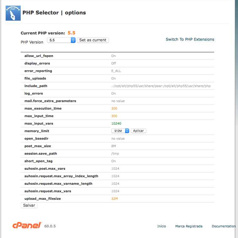 lismedia Posted October 28, 2016 Author Share Posted October 28, 2016 Estas são as configurações do servidor Até pode haver mais opções a bloquear mas este foi alterado para: max_input_vars 10240 no entanto continua com o problema. obrigado Link to comment Share on other sites More sharing options...