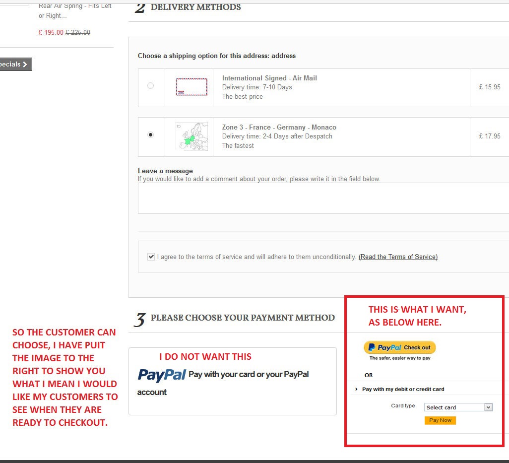 Andy UK AIR Posted October 27, 2016 Share Posted October 27, 2016 (edited) Hi all, I am building my new site https://ukairsuspension.com/en/ and wanted to offer paypal and credit card payment options. I installed the paypal europe module included with prestasho 1.6 which offers the standard credit card input screen which was great, but on the module the only otion was to offer this option for credit cards via paypal pro OR the yellow paypal express button. I need both to offer my customers a choice. So I purchased the paid for prestashop paypal module which does allow me to have both the yellow paypal button and credit card payments but the credit card setion that shows up says 'pay with your credit card with paypal' I do not want it to say that as on the paid for prestashop module screen shot it does not show that. Only shows pay with credit card. http://addons.prestashop.com/en/5314-paypal-direct-payments.html Any help thankfully recived. Andy Edited October 28, 2016 by Andy UK AIR (see edit history) Link to comment Share on other sites More sharing options...