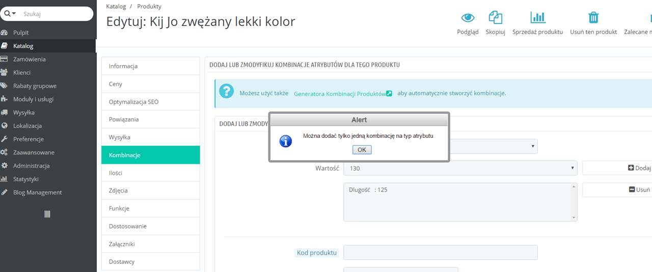 Witam, kiedy jestem w zakładce produkt i kombinacje nie mogę dodać wielu atrybutów