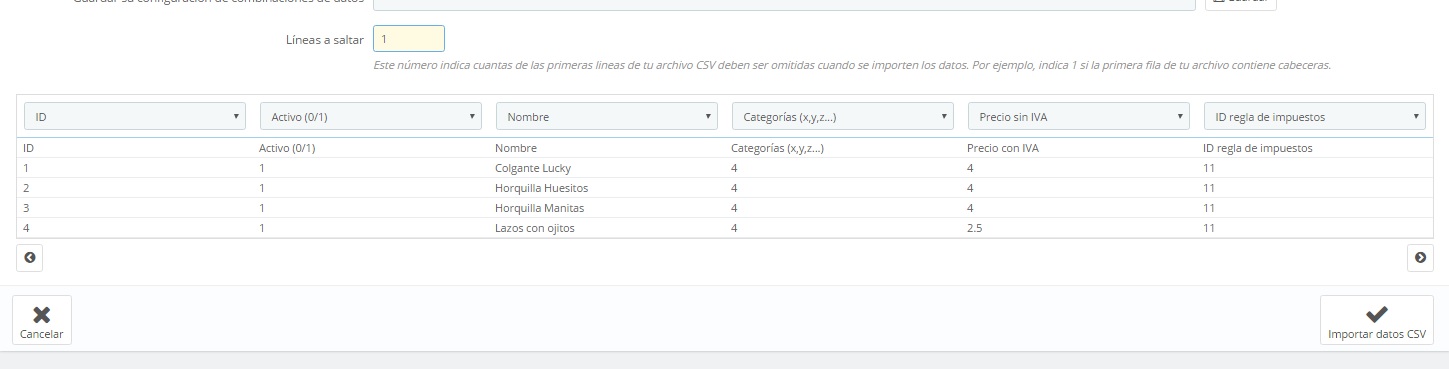 RockSteady Posted October 29, 2016 Share Posted October 29, 2016 (edited) Hola a todos, llevo toda la tarde volviéndome loca para subir los productos mediante CSV, estoy usando los campos que dice la web, importo el fichero y hasta ahí todo bien, pero cuando entro en Productos no me aparece ni el precio, ni las cantidades, nada... No sé si es que quizás no esté usando la plantilla adecuada o cual es el problema... (esta mañana con las categorías no me ha dado ningún problema...) Podéis echarme un cable?? Mil gracias ^^ Edited October 29, 2016 by RockSteady (see edit history) Link to comment Share on other sites More sharing options...
