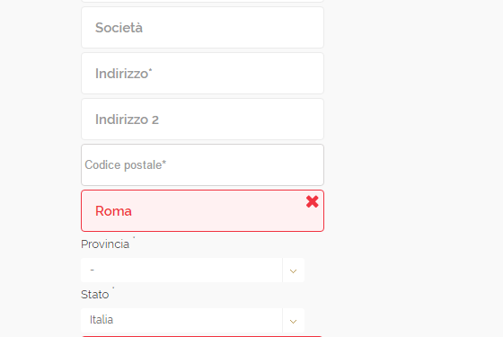 Ho un problema al momento della registrazione di un nuovo utente, nel campo "città" qualsiasi città si inserisce mi dà errore, come nella foto che ho appena allegato. Come posso risolvere questo problema?