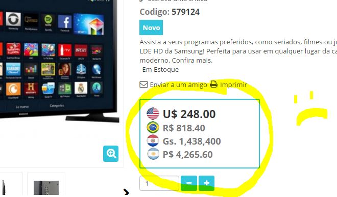 richardpy Posted November 1, 2016 Share Posted November 1, 2016 Hola, alguien sabe cual es la mejor forma de hacer que se muestre todos los precios segun tipos de monedas en la pagina del producto? Por ejemplo: U$. 100,00 GS. 550.000 RS. 350,00 Link to comment Share on other sites More sharing options...