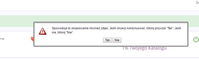 Uprzedzając pytania jak nacisnę że chcę skopiować produkt ale tym razem wybiorę opcję że bez zdjęć to też wyskakuje komunikat błąd.