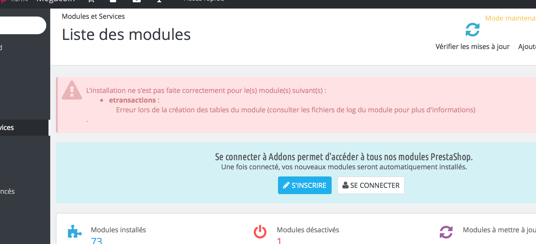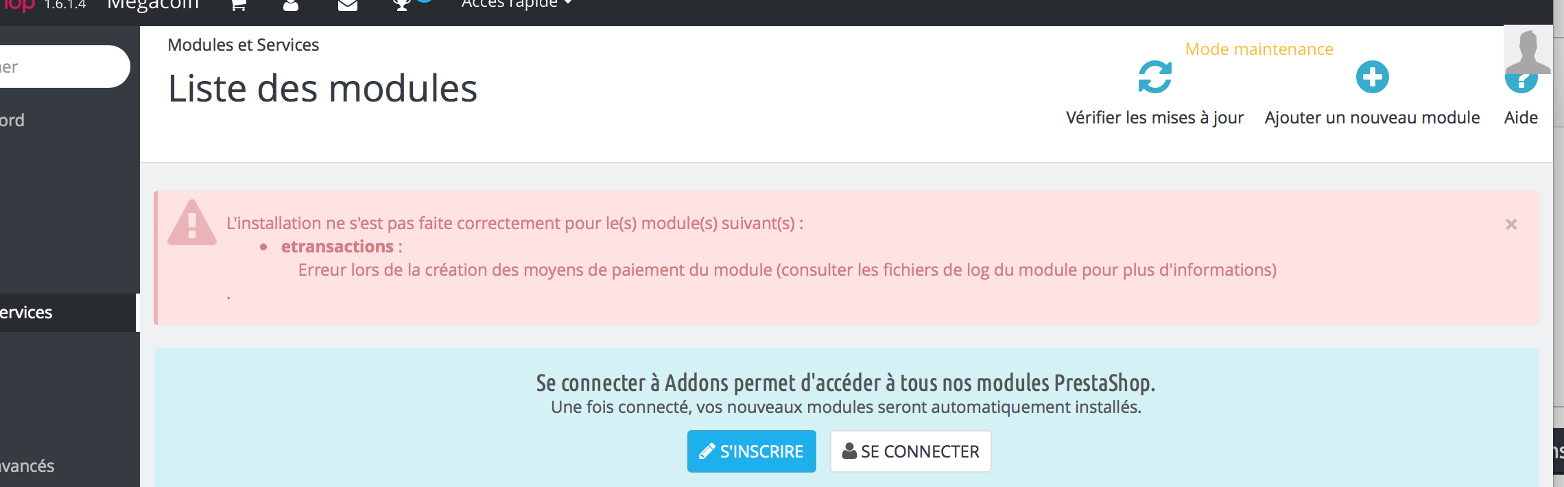 val18 Posted November 4, 2016 Share Posted November 4, 2016 Bonjour, je me permet de venir sur le forum pour vous demandez de l'aide. Alors voila, j'ai installé un module (e transaction du crédit agricole) manuellement, mais le problème, il n'apparait pas dans la liste de module et je n'arrive pas à afficher (afficher modules installés et non-installés). Je suis vraiment bloquer dans mon projet ducoup. Si quelqu'un à une solution je lui serais reconnaissant. Bonne journée ! Bon, j'ai du nouveau le module s'affiche mais a l'installation j'ai un message d'erreur après reinstallation nouveau message d'erreur Link to comment Share on other sites More sharing options...