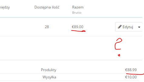 Problem jest taki jak na załączonym obrazku. W zamówieniu suma listy produktów jest inna niż podsumowanie koszyka.