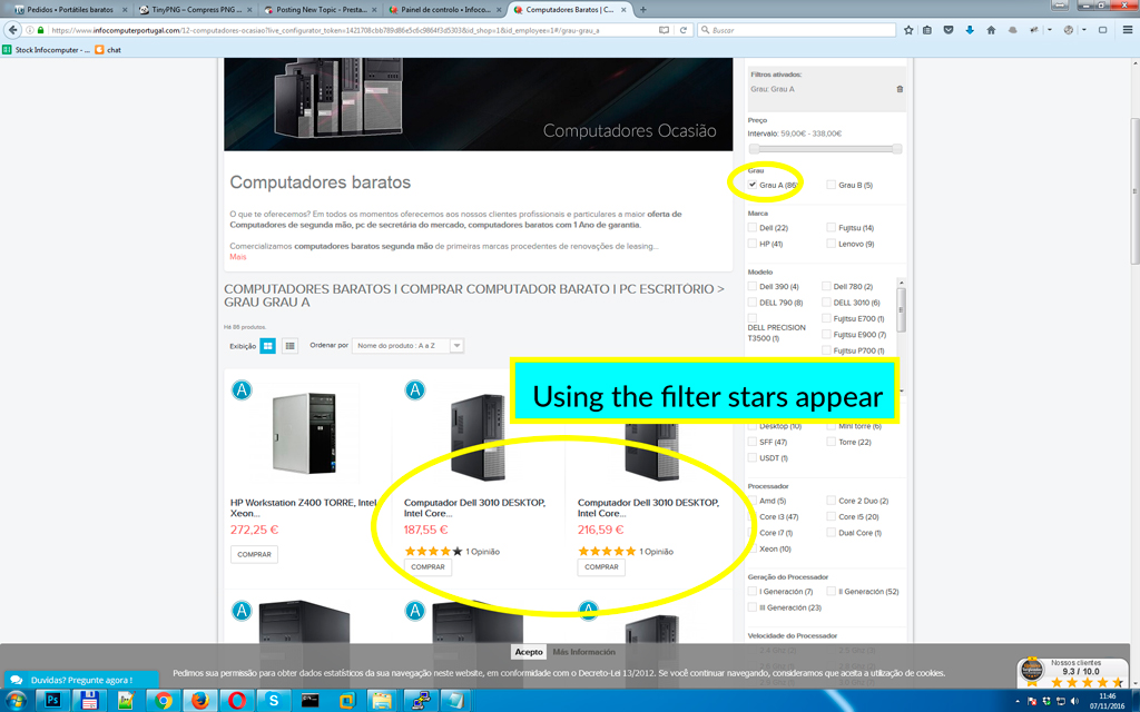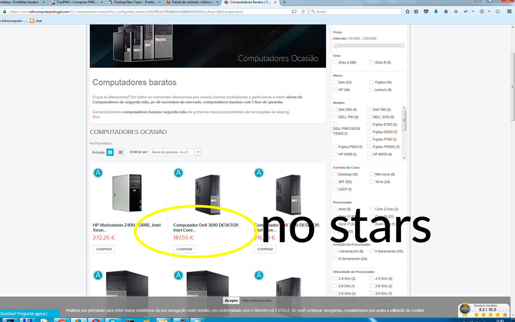 mitzayapa Posted November 7, 2016 Share Posted November 7, 2016 (edited) Hey guys , I need some help with my webpage , theres a javascript or something blocking my verified reviews stars , and i cant find out wich one. In any category , when you enter , the stars (verified reviews stars) appear for a second then dissapear.Using layered block (selecting a filter) the stars reapear. Ive tryied disabling the layered block but the problem persists. Iºm using ps 1.6.0.14 , the verified reviews dev tell me it has something to do with the theme , no response from the theme developer. https://www.infocomputerportugal.com is the webpage. Any help is appreciated. (photos attached) Edited November 7, 2016 by mitzayapa (see edit history) Link to comment Share on other sites More sharing options...