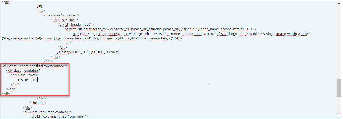 gösterdiğiniz yerdeki hook_top sadece test yazdığınız yere taşıyın.