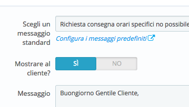 chelestra Posted November 7, 2016 Share Posted November 7, 2016 Buongiorno Nella pagina di ordine alla sezione messaggi al cliente è possibile impostare di default : "mostrare al cliente: si" ? Ringrazio tutti anticipatamente Paola Link to comment Share on other sites More sharing options...