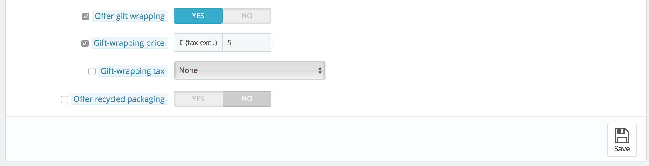 w3bsolutions Posted November 9, 2016 Share Posted November 9, 2016 Preferences > Orders , section "Gift options" (screenshot attached). 1 Link to comment Share on other sites More sharing options...